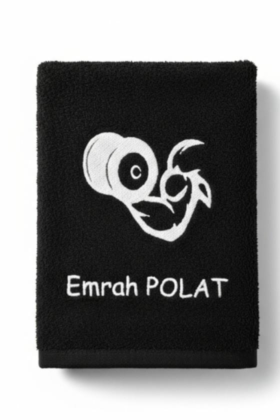 İsimli Fitnes  Antreman Havlusu Siyah 50x90 cm