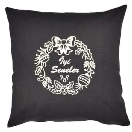 Kişiye Özel İyi seneler Yastığı 45x45 cm Siyah - Yılbaşı